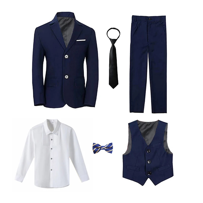 Boy’s balzer Formal Blue Black Slim Fit Suits Set Child Weddings Birthday Party Performance Dress Big Kids Jacket Pants Bowtie